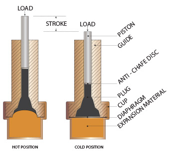 Each actuator is constructed internally the same way, and functions through thermal expansion; use the diagram below to better understand how these devices function. Based on your design criteria and application these internal parts can vary in material to ensure compatibility.