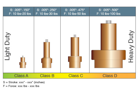 Every actuator designed and manufactured by Vernatherm by Vernet is specific to a customer; to simplify the selection process we have divided our actuator's abilities into 4 classifications ranging from light to heavy duty. What distinguishes actuators apart from each other is their physical size, piston extension, and force range.